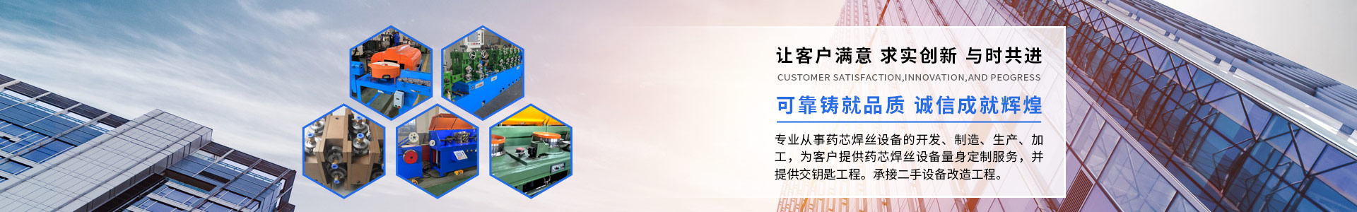 公司主要產(chǎn)品:藥芯焊絲成型機(jī),釬焊藥芯焊絲成型機(jī)及切絲機(jī)和層繞機(jī),各種型號(hào)拉絲機(jī),焊絲層繞機(jī),桶裝焊絲機(jī),鋼帶層繞機(jī),鋼帶清洗機(jī),混粉機(jī),鋼帶對(duì)焊機(jī),高精度加粉器,輥模,焊絲擦絲機(jī)等藥芯焊絲相關(guān)配套設(shè)備。公司技術(shù)團(tuán)隊(duì)有多年從事焊絲設(shè)備行業(yè)累計(jì)的經(jīng)驗(yàn),結(jié)合公司的不斷的創(chuàng)新理念,在釬焊藥芯焊絲設(shè)備領(lǐng)域取得了廣大客戶的認(rèn)可。我們本著客戶至上,以誠(chéng)為信,以質(zhì)為本。一切以客戶需求為根本,為客戶定制出滿意的產(chǎn)品。